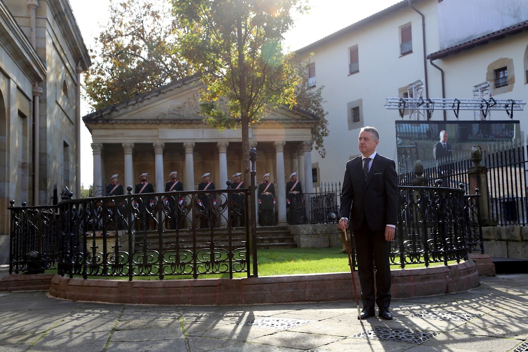 Hau izan da Iñigo Urkullu lehendakariak erabilitako testua: "Apal-apalik, Jaungoikoaren eta gizartearen aurrean, eusko-lur gainean zutik eta Gernikako haritzaren azpian, asaben gomutaz, herri-ordezkari zareten zuen aurrean, nire agintea zintzo beteko dudala zin dagit".