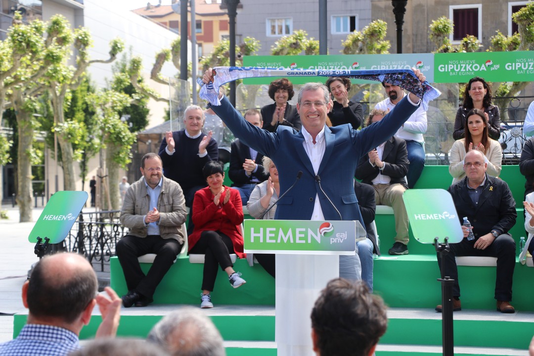 EAJ-PNVk ekitaldi politikoa egin du gaur Zabaltza plazan, eta bertan egin ditu adierazpen hauek Olanok. Hitza hartu dute, baita ere, Gipuzko Buru Batzarreko presidente den Joseba Egibarrek, Europako Parlamenturako hautagai den Izaskun Bilbaok eta Irungo alkategai den Xabier Iridoyk. Ehun alderdikide eta jarraitzaile inguru hurbildu dira ekitaldira, tartean eskualdeko hainbat hautagai zeudelarik.