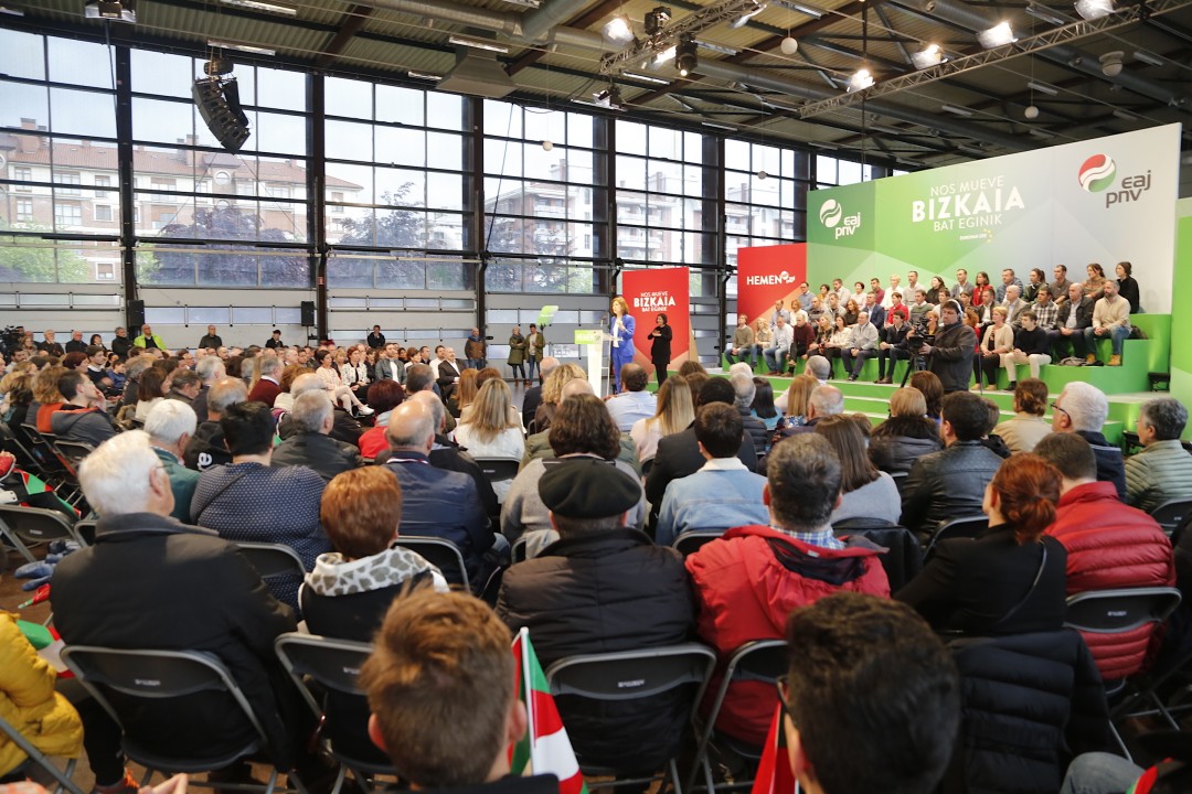 Andoni Ortuzar Euzkadi Buru Batzarreko presidenteak gaur Durangon zabaldu duen mezua sinplea bezain argia izan da “maiatzaren 26an herritarren parte hartze handia eman dadila eskatzen dugu. Bakoitzak bozka dezala nahi duena, baina bozkatzera joan dadila. Zenbat eta boto gehiago, orduan eta hobeto demokraziarentzat”, esan du jeltzaleen buruak, eta gogoratu du egun horretan jokoan dagoena “Durangon, Durangaldeko herri bakoitzean, Euskadiko herri bakoitzean: iragana edo etorkizuna; protestak edo proposamenak; eragozpenak edo akordioak; Pancho Villaren ejertzitoa edo Euzko Alderdi Jeltzalea. Hori da jokoan dagoena, hainbat lekutan bi aukera baino ez daudelako”. Ortuzarrek Landakon hitz egin du gaur- “gure Herriaren suspertze kulturalaren sinboloan, baina baita Durango berriaren suspertzearen sinboloan”- Izaskun Bilbao Barandica Europako Parlamentuko diputatu jeltzale eta CEUS-Europa Solidarioaren aldeko Koalizioaren zerrendaburuak ere hitz egin duen ekitaldian. Gainerako hizlariak izan dira Bizkaiko ahaldun nagusi eta berrautaketarako hautagai Unai Rementeria eta Durangoko alkategai jeltzale Mireia Elkoroiribe; eta gainera, Iñigo Urkullu Lehendakaria ikusleen artean egon da mitinean.