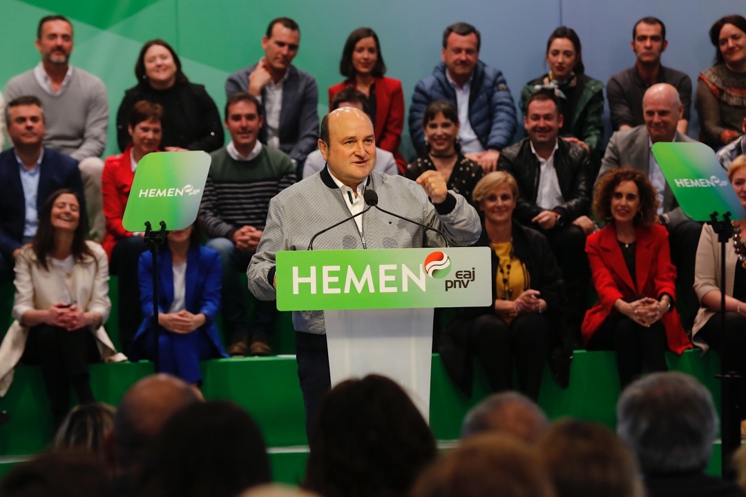 Durangon egin den ekitaldi politikoan, Andoni Ortuzarrek euskal hiritargo osoari adierazi dio “asko dagoela jokoan” eta igandean aukeratu beharko duela “iragana, protesta eta eragozpenen” edo “etorkizuna eta EAJ ereduaren proposamen eta akordioen artean”