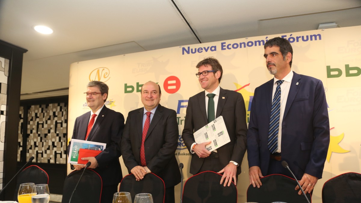 Vitoria-Gasteiz, Donostia eta Bilboko alkate eta igandeko hauteskundeetara aurkezten diren hautagaiek 300 pertsonen aurrean hitz egin dute gaur goizean Nueva Economia Forumean. Aurkezpen lanak egin ditu Euzkadi Buru Batzarreko presidenteak