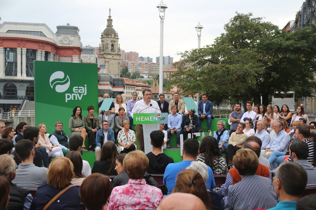 Aitor Estebanek, azaroaren 10eko hauteskundeetarako EAJ-PNVk aurkeztuko duen zerrendako buruak Pedro Sánchezi leporatu dio gaur hauteskundeak errepikatu behar izatearen errua “interes orokorrean baino, norberekerian aritu delako” eta “beti berandu” ibiltze eta “kanpainarako agenda bai baina Gobernu agendarik ez izatea” egotzi dio. Horren aurrean, Estebanek hitzeman du EAJ-PNVren emakume eta gizonen aldetik “sen ona eta lana” egongo direla euskal hiritargoaren interesen defentsa egiteko”, pendiente geratu diren erronkei heltzeko eta “Euskadiren ahotsa eztabaida guztietan egon dadin”, “Madrilen asko dagoelako jokoan”.