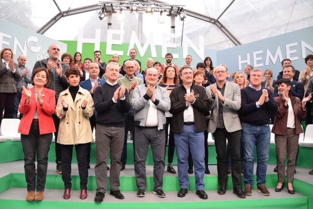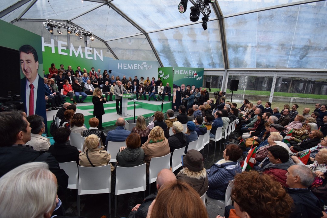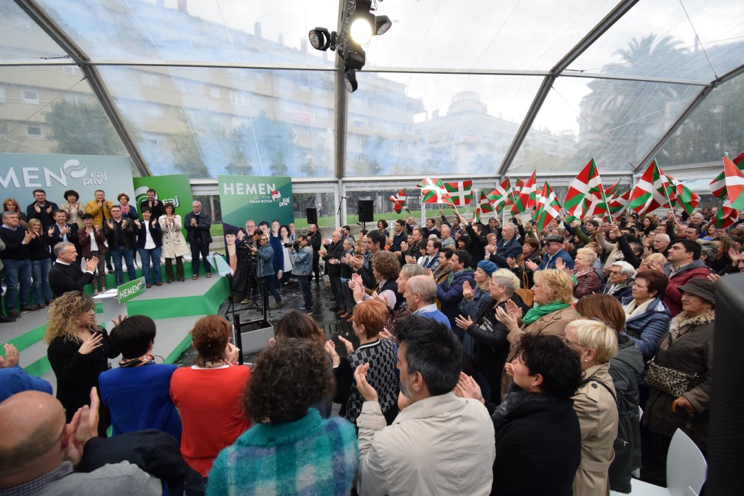 Aitor Estebanek, Diputatuen Kongresurako Bizkaiko hautagaiak, nabarmendu du politikan “benetan garrantzitsuak” direla “egintzak, zure lanak jendearen bizimoduan dauzkan ondorio erreal eta positiboak”. Zentzu berean, gogora ekarri du EAJ-PNVren “zerbitzu-orria”: pentsioen igoera; azpiegiturak, hauen artean Pasaiako portua edo AHT, Forondan 24 orduko zerbitzua berreskuratu izana… Horren guztiaren aurrean salatu du PP edo PSOE ez direla euskal agendaz arduratzen, eta gogora ekarri ditu “zerbitzu publikoak mugatzeko asmoarekin lege eta ebazpenen kontra aurkeztu diren errekurtsoak”, esate baterako botiken kopagoarekin eta bekekin gertatu dena. Halaber, Estebanek Estatuko alderdien “panorama” deskribatu du: “PP eskuinaren eskuinean dago Casadorekin, orain moderatuarena egin nahi duen arren; Rivera galduta dabil, Vox-en antzera Kongresutik bota nahi gaitu eta Ekonomia Ituna suntsitu nahian dabil, beste lotsagabe, iraintzaile eta totalitario horiekin batera”. “Estatuan giro larria nagusi den honetan, ‘disfunzioekin’, birzentralizatzeko proposamenekin eta euskal herritarren eskubideak mugatzeko dituzten asmoekin, EAJren aldeko botoa inoiz baino beharrezkoagoa da”. Horregatik eskatu du euskal hiritarren botoa “esparru sozialean eta ekonomikoan hiritargo osoarentzat interesgarriak diren gaiak planteatzeko” eta “autogobernuaren kontra datorren haizeteari” aurre egiteko.