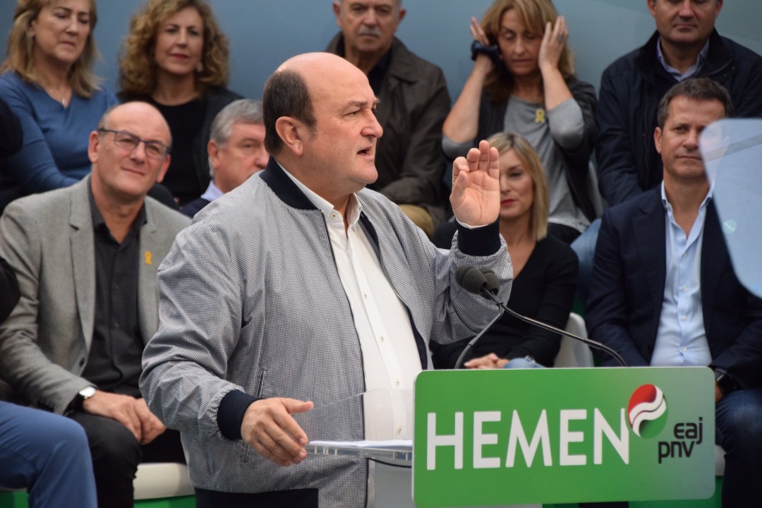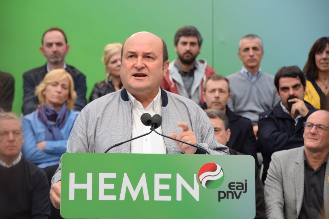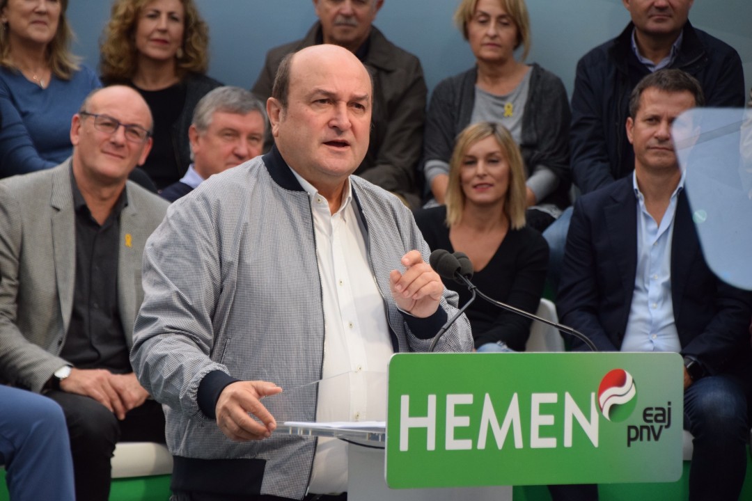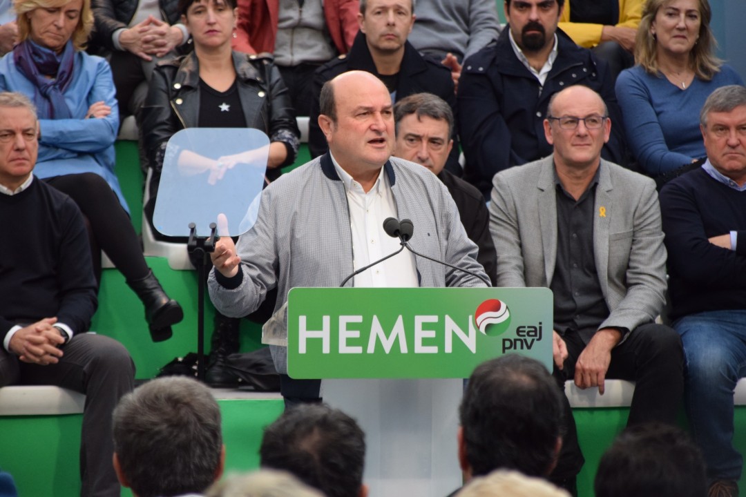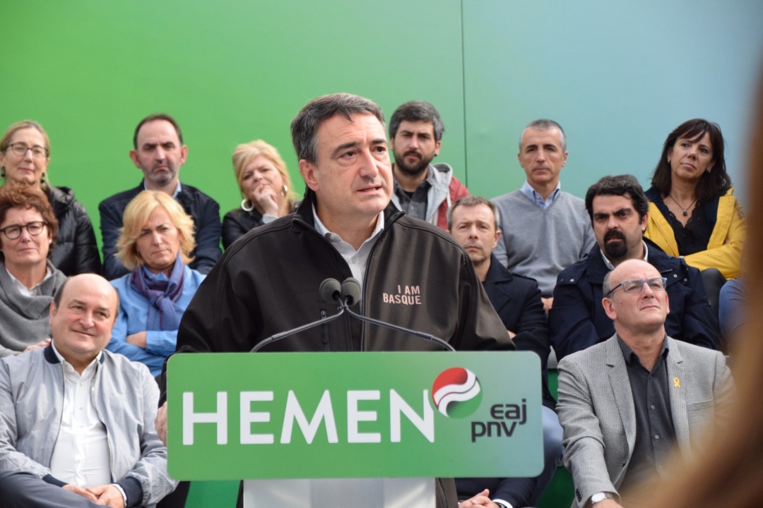“PSOE alderdia ‘Orain bai’ goiburuarekin aurkeztu da oraingo kanpainan. Eta Sánchezi galdetu nahi diogu ‘Orain bai’ transferituko ote dituzten beraiek egutegi batean onetsi zituzten eskuduntzak. ‘Orain bai’ beteko ote dituzte azpiegituretan inbertitzeko hitzeman dituzten konpromisoak? ‘Orain bai’ Nafarroako Erkidegoari transferituko ote dizkiote Foru Gobernuarekin hitzemandako Trafiko eskuduntzak? Horretaz guztiaz Sánchezek hitz erdirik ez”. Euzkadi Buru Batzarreko presidente Andoni Ortuzarrek galdera horiek guztiak luzatu dizkio Espainiako gobernuko presidenteari, EAJ-PNVk, gaur goizean, Donostian, José María Sert plazan egin duen ekitaldi politikoan. Mitin berean hitz egin dute Iñigo Urkullu Lehendakariak; Diputatuen Kongresuko Euskal Taldeko bozeramaile Aitor Estebanek, Joseba Agirretxea Kongresurako Gipuzkoako zerrendaburuak eta Maribel Vaquerok, Gipuzkoako senatari eta berrautaketara aurkezten den hautagaiak. Urkulluk bere aldetik ohartarazi du azaroaren 10ean Euskadin eta Estatuan asko dagoela jokoan, inguru haietan ‘vuelva usted mañana’ leloa nagusitzen hasi den aldi honetan. Ez da eztabaidarik egiten adosteko borondatearekin, ez dago harreman eraikitzailerik”, eta “horrek berarekin dakar euskal autogobernuaren kontrako mehatxua”.