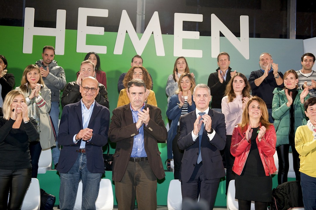 Urkulluk bere diskurtsoaren azken zatirako utzi du Vox-i eman nahi izan dion erantzun argi eta sendoa, Espainiako politikagintzara oso egoera kezkagarria ekarri duela nabarmenduz. “Aldi berean kezka eta haserrea sentitzen dugu. Hamarkadak daramatzagu birzentralizaziorako dagoen nahia, Estatuak dituen egitura arazo larriak disimulatu nahi dituena, eta nazioaniztasuna ez da horietako bat. Inkisizio politikoaren zantzuak lotsa gabe antzematen dira. Euskadiri ukatu diote berezko duen ezaugarria: nazio dela. Euskadiri ukatu diote berezko duen zerbait: Nazioa. EAJri ukatu diote berezko duen zerbait: erreferente demokratikoa dela. Errespetatzen dudan sentimendu nazionalista espainiarra ezkutatu nahi duen ‘patriotismo konstituzionala’ kontzeptuaz baliatuta, nazionalismo supremazista, baztertzaile eta hertsia azaleratzen da, eta nazionalismoak legez kanpo uztea planteatzen da. Ilegalizatzearekin mehatxatu gaituzte. EAJ hazi egin zen Primo de Riveraren garaian, demokrazia eta errepublikarn legaltasunae defendatu zituen, Europako mugimendu berrian parte hartu zuen, erbestera irten behar izan zuen eta Eusko Jaurlaritzaren duintasunari eutsi zion, diktadura garaian bizirautea lortu zuen, trantsizio demokratikoan lagundu zuen, Eskubide Historikoak, Ekonomia Ituna eta Autogobernua defendatu eta negoziatu zituen. Beti gaitzetsi dugu indarkeria eta terrorismoaren eta totalitarismo guztien kontra borrokatu gara. Estatuaren demokratizazioan parte hartu dugu”, aldarrikatu du. Horregatik, Urkulluren iritziz, eskuindarrekoei eta mehatxuz jositako mezuei aurre egiteko modurik onena igandean hautestontziak betetzea da, “demokraziaren eta Euskadiren aldeko botoekin, EAJren aldeko botoekin. Igandean, Euskadi zutik jarriko da eta argi eta ozen esango du: “Hemen ez! Gure Herrian ez! Pluraltasunari errespetua galtzeari ez. Desberdina dena baztertzeari ez. Birzentralizaziorik ez. Ilegalizaziorik ez. Demokrazia gehiago bai. Euskadi gehiago bai. Hauxe da Euskadiren alde bozkatzeko unea, EAJ bozkatzeko momentua”, baieztatu du.