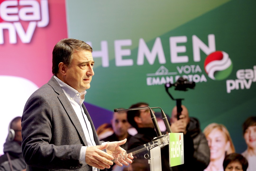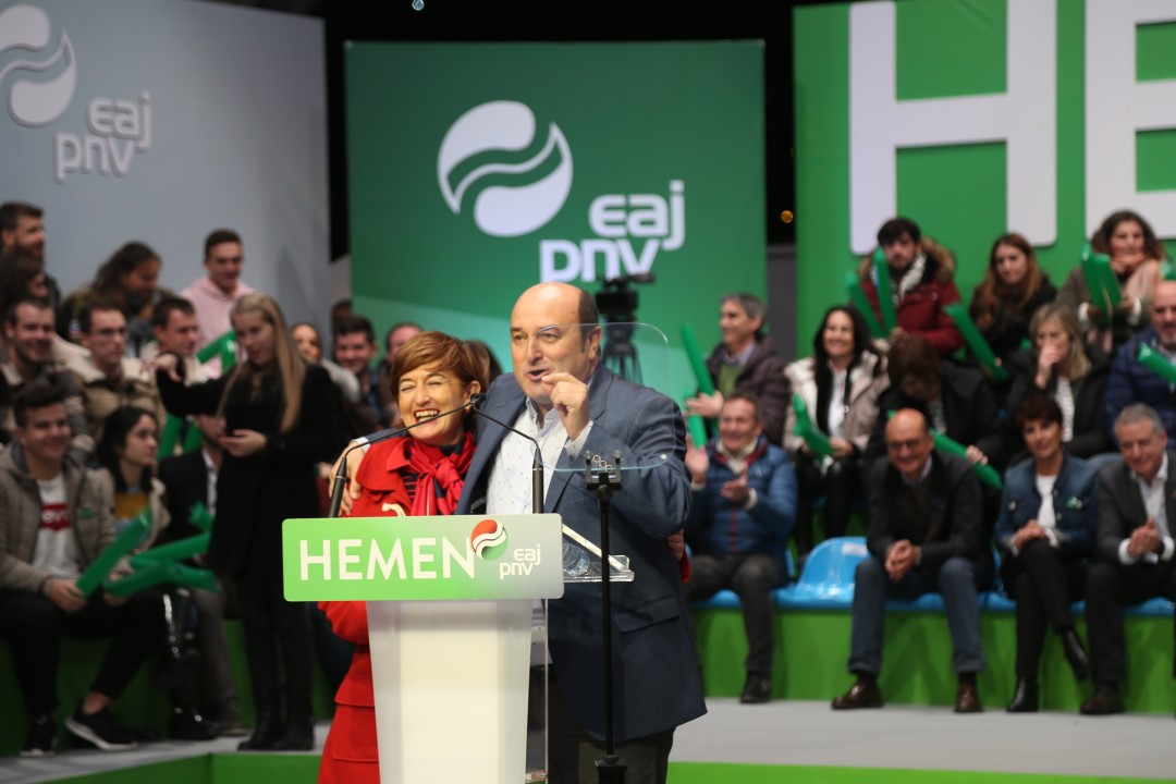 “Kanpaina hasi genuen traineru batean, gaur eskatzen dizuet azken txanpa honetan bogan jarraitzea. Itsasoa zakar dago, olatuak harrotuta daude, hegoaldetik haizete bortitza dakar, baina gu Euzko Alderdi Jeltzalea gara eta ez gara kikilduko, ez dugu norabidea aldatuko. Igandean erakutsi behar dugu Euskadi bestelakoa dela, Euskadi gure nazioa dela eta badaukala Madrilen nork defendatu”. “Behin eta berriz mehatxatzen dute garena eta daukaguna, gure eskuduntzak murrizten dituzte, Estatutua bete gabe daukate, Ekonomia Itunaren kontrako erasoak egiten dituzte, 155. artikulua aplikatu dute eta oniritzia ematen diote alderdiak ilegalizatzeari. Euskadik badaki EAJk inoiz baino indartsuagoa izan behar duela, Madrilen ere bai, Diputatuen Kongresuan eta Senatuan ere bai, Euskadi defendatzeko lehen lerroa Madrilen dagoelako”. Andoni Ortuzarren eta Iñigo Urkulluren esaldi hauek argi baino argiago laburbiltzen dute EAJ-PNVk gaur Bilboko Areatzan A-10erako hauteskunde kanpainari amaiera emateko egin duen ekitaldi politikoan nagusitu den mobilizazio eta kontzientziazio izpiritua. 3.500 bat alderdikide, alderdizale eta lagun elkartu dira bertan eta Euzkadi Buru Batzarreko presidentearekin eta Iñigo Urkullu Lehendakariarekin batera hitz egin dute Kongresurako Bizkaiko zerrendaburu Aitor Estebanek, Senaturako Arabako hautagai Almudena Otaolak eta Senaturako Gipuzkoako hautagai Maribel Vaquerok.