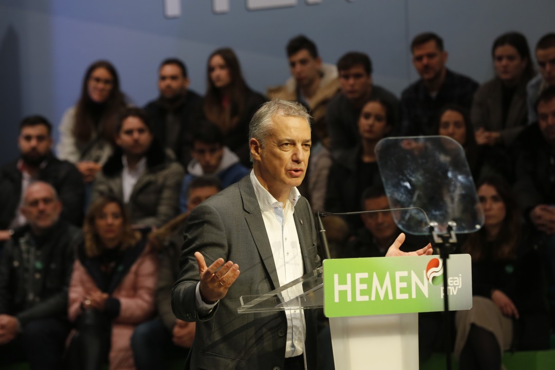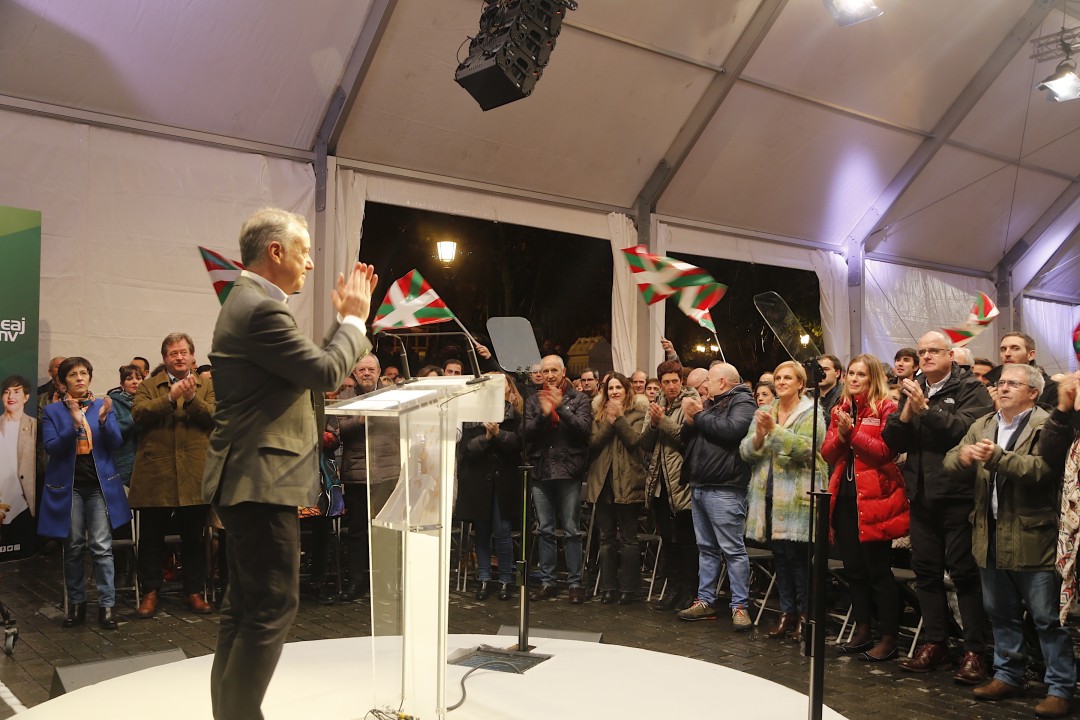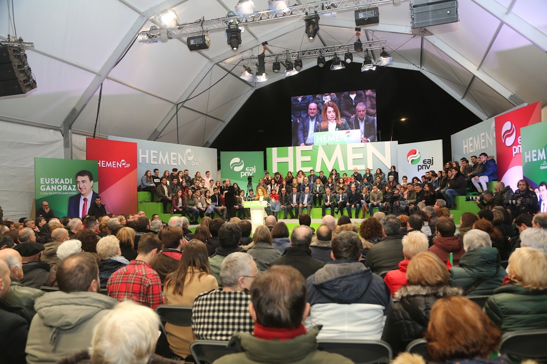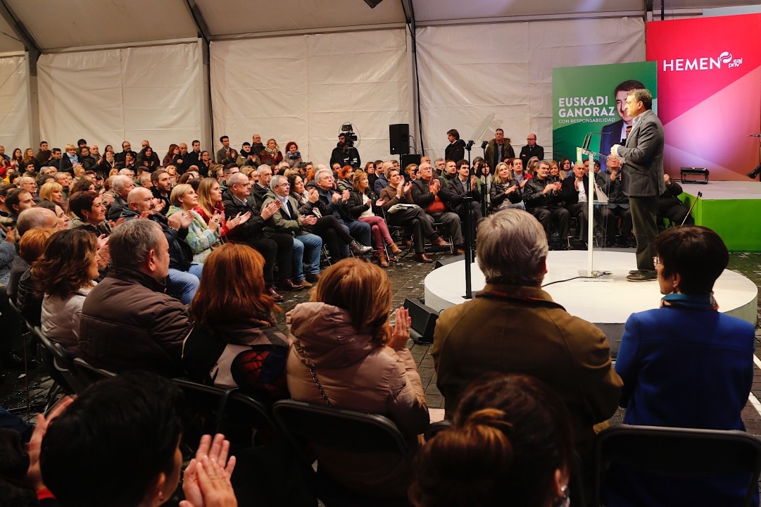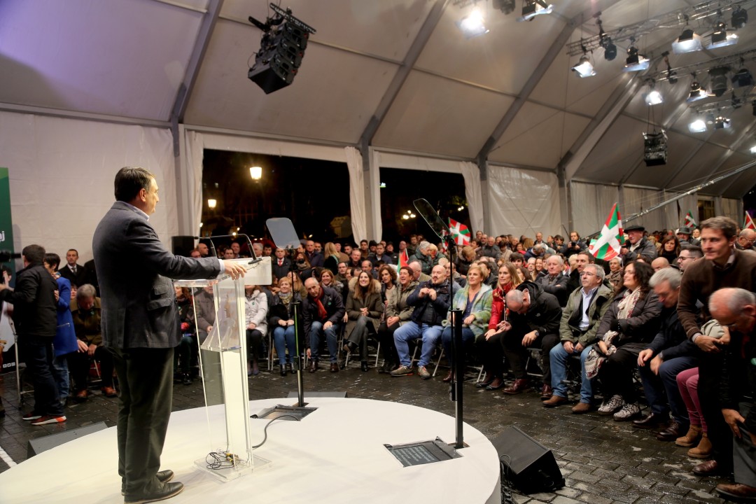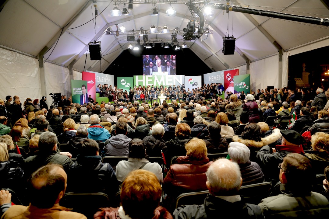 Iñigo Urkulluk gogora ekarri du EAJ-PNVk kanpaina ixteko ekitaldia egin duen lekutik metro batzuetara, duela 125 urte, lehen aldiz Ikurrina jarri zela “Euskal Herriaren nazio sentimenduaren adierazgarria, Euskal Nazioaren sinboloa mundu osoan”. “Nortasuna eta historia duelako, kultura eta izaera berezia dituelako, sentimendu eta borondate bat dagoelako, Euskadi Nazio da”, baieztatu du Urkulluk, baina “Espainian, askok ez dute Euskal Nazioa atsegin eta behin eta berriz mehatxatzen ari dira garena eta daukaguna”. Mehatxu horien guztien aurrean, Madriletik iristen diren murrizketen eta inposaketaren aurrean, Lehendakariak argi eta garbi aldarrikatu du “Euskadiren indar guztia” EAJren inguruan batzea “argi eta ozen, hemen gaudela esateko”. Urkulluren esanetan “Euskadik badaki EAJk inoiz baino indartsuagoa izan behar duela. Gaur egun hautesle asko daude beren botoa non amaituko duen ez dakitela, baina EAJ bozkatzen duenak badaki bere botoa nora joango den eta nora joango ez den. EAJ bozkatzen duenak argi baino argiago dauka bere botoa probetxugarria izango dela Euskadirentzat, Euskadiren aldeko botoa izango dela, euskal ekonomiaren alde, industriaren alde, Autogobernuaren, ongizatearen eta etorkizunaren alde. Euskadirentzako berme politiko bakarra EAJ da: zorroztasuna, lana, seriotasuna, lankidetza, Euskadirentzako etorkizuneko proiektua, eta Euskal Nazioa eraikitzen jarraitzeko bermea”, amaitu du.