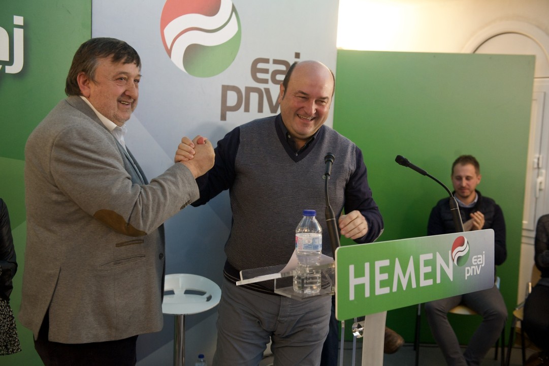 “Egon zaitezte lasai Alderdiak Estatus Berriaren eztabaidan defendatuko duen jarrerarekin: ez gaituzte desbideratuko, ez PPk ezta Bilduk, Alonsok edo Otegik ere. Gure bidetik jarraituko dugu, ahalegina egiten jarraituko dugu akordio bat egon dadin lehenengo eta behin Euskadin eta gero Madrilekin eta Bruselarekin; jauzi handia ematea ahalbidetuko digun akordioa, akordio kualitatiboa autogobernuan; Estatus Berria, euskal herritarrok gure etorkizuna demokrazia barruan eta askatasun osoz erabakitzen jarrai dezagun”. Iragan igandean Sukarrietan esan zuenaren ildo beretik, Andoni Ortuzarrek argi baino argiago hitz egin du gaur Gaubean, EAJ-PNVK Añanako Kuadrillan egin duen Alderdikide Egunean. Euzkadi Buru Batzarreko presidenteak, halaber, jeltzaleen jarrera berretsi du Pedro Sánchezen inbestidura ahalbidetzera begira, baldin eta hautagai sozialistak lurralde eztabaidari ausardia politikoarekin heltzen badio, bereziki Euskadiri eta Kataluniari dagokion aldetik: “Hamabost egun ditugu inbestidura gauzatzeko. Pedro Sánchez eta bere alderdia ausartak badira eta Madrilgo politikari eta hedabide atzerakoiengandik aldentzen badira, gurekin lotura sendoak eta bermeekin ezartzen badituzte, gauzak ondo joango dira”, baieztatu du jeltzaleen buruak. Ortuzarrek Gaubeako Udaletxean egin den ekitaldi politikoa amaitzeko hitzak esan ditu gaur goizean, Araba Buru Batzarreko presidente Jose Antonio Suso, Gaubeako alkate Juan Carlos Ramírez eta Lurralde Jareetako batzarkide Rakel Vicariori entzun ondoren.