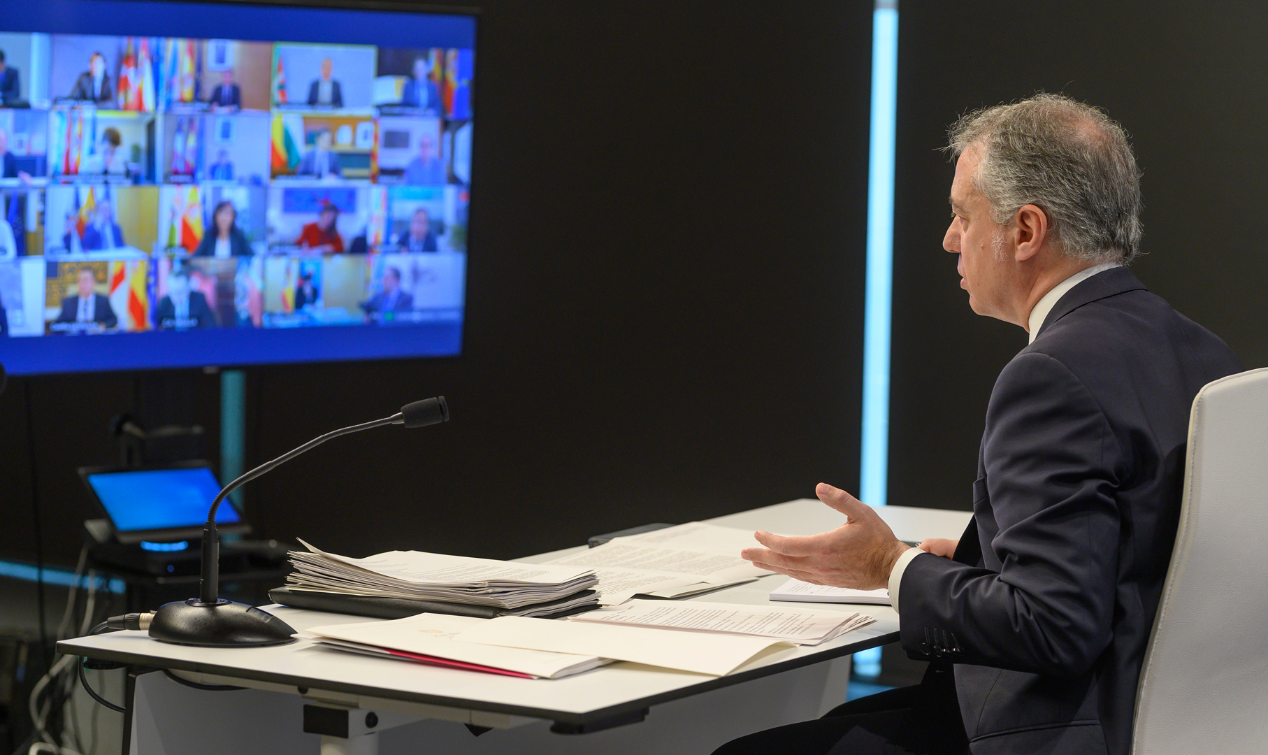Iñigo Urkullu Lehendakariak parte hartu du, Lehendakaritzatik bideokonferentzia bidez, Espainiako Gobernuko Pedro Sanchez Presidenteak deitutako Presidente autonomikoen zazpigarren bileran, Covid-19 koronabirusak sortutako egoerari aurre egiteko.