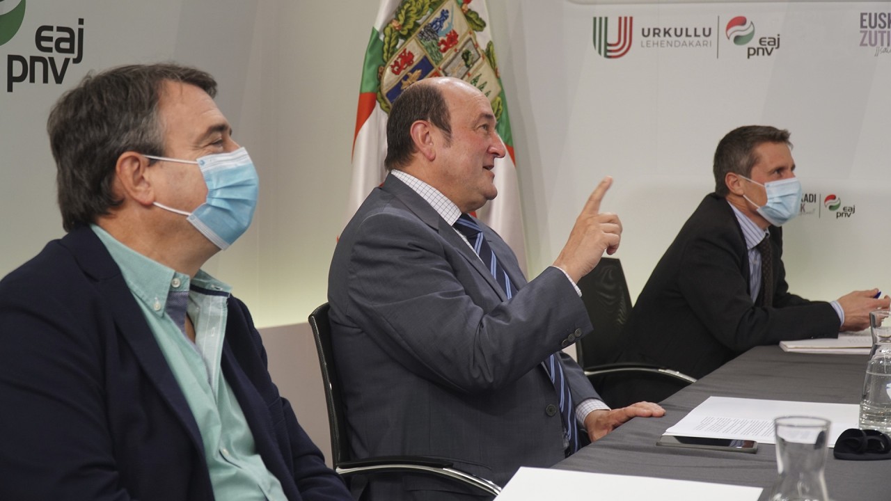 16Urriak Venezuelako Asanblada Nazionaleko presidenteak, Juan Guaidók, Andoni Ortuzar Euzkadi Buru Batzarreko presidenteari Venezuelako oposizioko guztien esker ona adierazi du gaur, Amerikako buruzagiaren hitzetan EAJ-PNV “une oro, Venezuelako demokraziaren,askatasunen eta Giza Eskubideen alde agertu delako”. Guaidók, Caracasetik eta Ortuzarrek, Bilbotik, bilera telematikoa egin dute gaur arratsaldean ordu betez. Bilera berean parte hartu dute EBBren Nazioarte Gaietarako burukide arduradun Mikel Burzakok, Diputatuen Kongresuko Euskal Taldeko bozeramaile Aitor Estebanek eta Guaidók Espainian duen enbaxadore Juan Ecarrik, Espainiara erbesteratu diren Venezuelako hainbat kongresukiderekin batera.