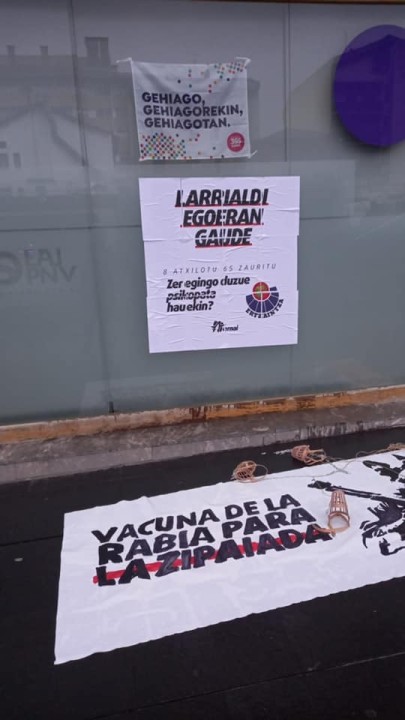 EAJ-PNVren Bizkai Buru Batzarrak bere egoitzen kontra egin diren azken erasoak salatu eta gaitzetsi ditu, atzo Bilbo Zaharra, Mungia eta Galdakaoko batzokietan, eta Sabin Etxeko fatxadan egin zirenei gehitzen zaizkiela gogoan