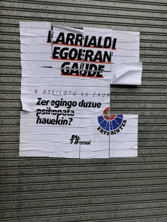 Horregatik, jarduera hauen egile eta erantzuleei erreklamatu nahi diegu berehala amai dezatela amorru- eta haserre-giroa sortzea besterik bilatzen ez duten eraso antolatu eta kolektiboekin. Horrela izan ezik, gizartearen gehiengoari oso zail egingo zaio ezker abertzalea bere sorreraren hamargarren urteurren arranditsuan ahoz aldarrikatzen ari den jarrera demokratikoaren benetasuna sinestea.