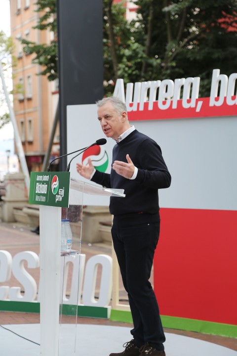 Lehendakariak “pankartaren ereduaren aurrean” defendatu du lan egiteko modu hau, Ainhoa Basabe Sestaoko alkate andre eta alkategaiarekin eta Josu Bergara Bizkaiko Batzar Nagusietan Ezkerraldea, Meatzaldea eta Enkarterri bateratzen dituen hautesbarrutiko zerrendaburuarekin batera egin duen ekitaldi politikoan