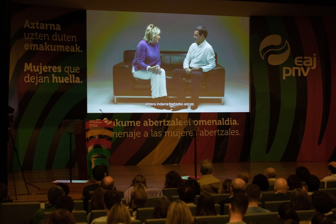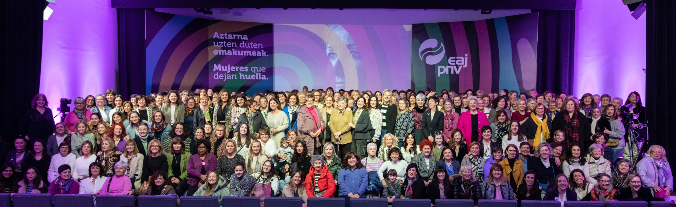 Esaldi horiek borobiltzen dute, atzo eta gaur Alderdian eta Euskadin aztarna utzi duten emakume guztiei EAJ-PNVk gaur egin dien gorazarrea. Duela ehun urte baino gehiago Emakume Abertzale Batza (EAB) osatu zuten emakumeak bezalakoak. Emakumeek eratutako lehen erakunde politikoa izan baitzen penintsulan. “Eurei esker, gaur gara. Guk badugu nori begiratu. Eta harro baino harroago esan dezakegu. Emakume indartsuak, ausartak, emakume urratzaileak, urratsa ematen jakin zutenak askatasuna exijitzen zuen herri baten eskariak bereganatu zutelako, bai eta bere espazioa bilatu nahi zuen kolektiboaren aldarrikapenak ere. Beren esfortzurik eta ausardiarik gabe, Euskadi ez litzateke izango gaur egun den herria. Beren adore eta dedikaziorik gabe, Euskadi ez litzateke izango gaur ezagutzen dugun herria”, ziurtatu du Euzkadi Buru Batzarraren idazkari eta Sabino Arana Fundazioaren presidente Mireia Zaratek. Ekitaldi berean hitza hartu du EAJ-PNVren Lehendakarigai Imanol Pradalesek, zeinak euskal herritar guztiei, eta oso bereziki gizonei, proposatu baitie “Euskal gizarte berdintzaileagoaren aldeko konpromisoa hartzea; konpromiso bat egungo egiturazko desberdintasunaren eta indarkeria matxistaren amaierarekin; eta konpromiso bat tratu- eta aukera-berdintasunarekin ere”. Topaketan musikarako eta umorerako tartea ere izan da eta amaiera eman zaio Bizkaia Aretoko terrazan ekitaldian izan diren emakume guztiei egin zaien argazkiarekin.