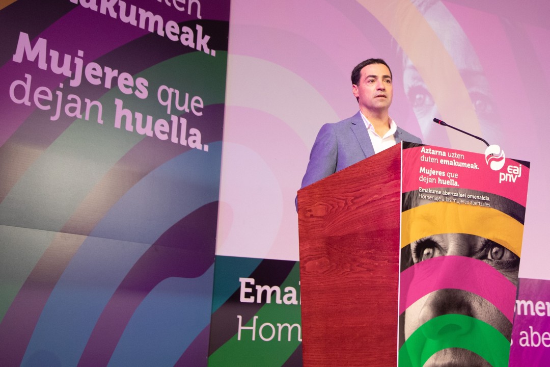 Imanol Pradalesek, EAJ-PNVren Lehendakarigaiak, emakume guztiei eskertu nahi izan die belaunaldi berrien erreferente izatea, bere ama berea izan zen modu berean. Eta egin zuten ahalduntzerako ia aukerarik ematen ez zuen garaian. Berdintasuna lehen plano sozial eta politikora eramateko erantzukizuna hartu zuten: “Energiaz betetako emakumeak, emakume aktiboak, borrokalariak, iritzi propioa zutenak, beren irizpide propioaekin, antolatzeko eta kudeatzeko gaitasunarekin”, esan du. Pradalesek, ildo beretik, dei berezi bat egin nahi izan du, gizarte osoa, eta gizonak oso bereziki, berdintasunaren trainerura igo daitezen eta boga egin dezaten: “Geuregana dezagun gizarte eta Euskadi berdintzailearekiko benetako konpromisoa. Konpromisoa egiturazko desberdintasunarekin eta indarkeria matxistarekin, tratu-eta aukera-berdintasunarekin. Eta egin dezagun zaintzaren, hezkidetzaren eta kontziliazioaren inguruko begirada berri batekin. Azken finean, konpromiso bat emakume eta gizonen arteko benetako berdintasunarekin, bizitzaren arlo guztietan eta momentu guztietan”, exijitu du.
