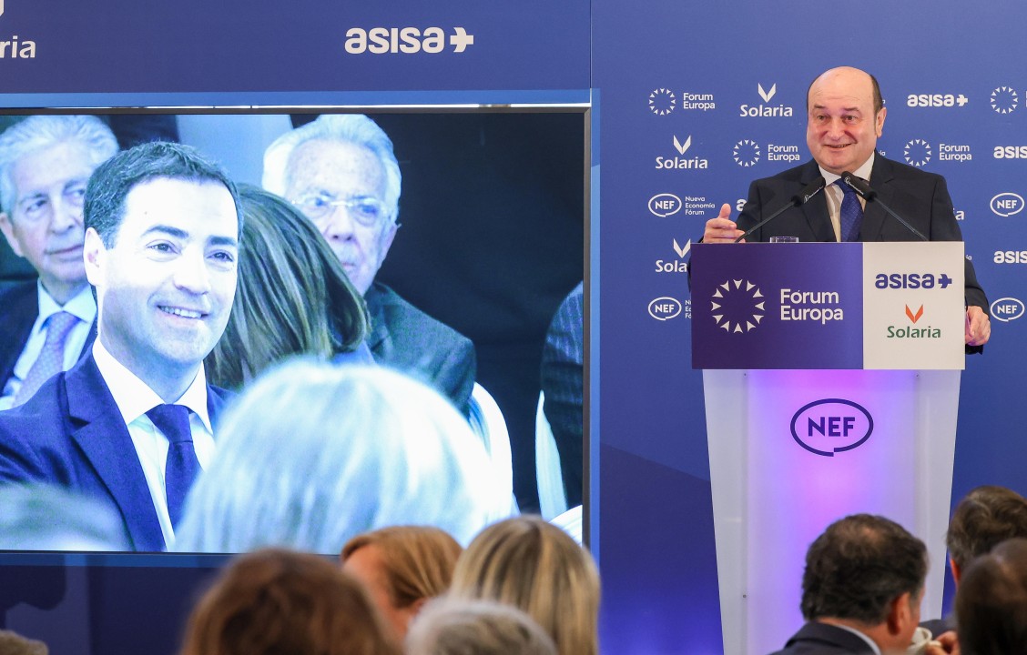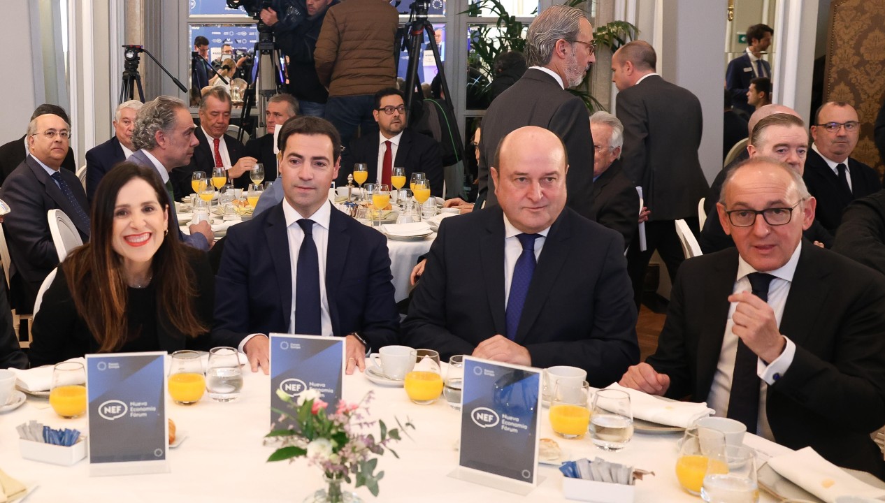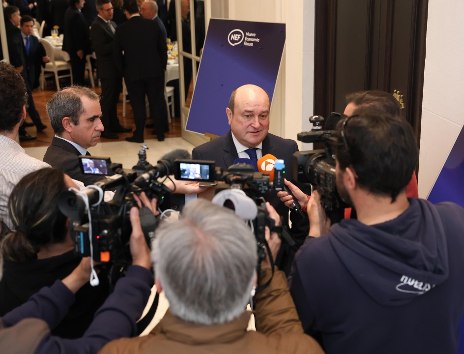 Lehendakarigai jeltzaleak gaur goizean parte hartu du Nueva Economía Forum-en: “Hitz egiteko eta adosteko gai gara, ezin da bestela izan, euskal herritarren interesak defendatzeko, eta betidanik argi izan dugun zerbait da Estatuan eta Europan zenbat eta ziurtasun eta egonkortasun handiagoa izan,orduan eta hobeto izango dela Euskadirentzat”
