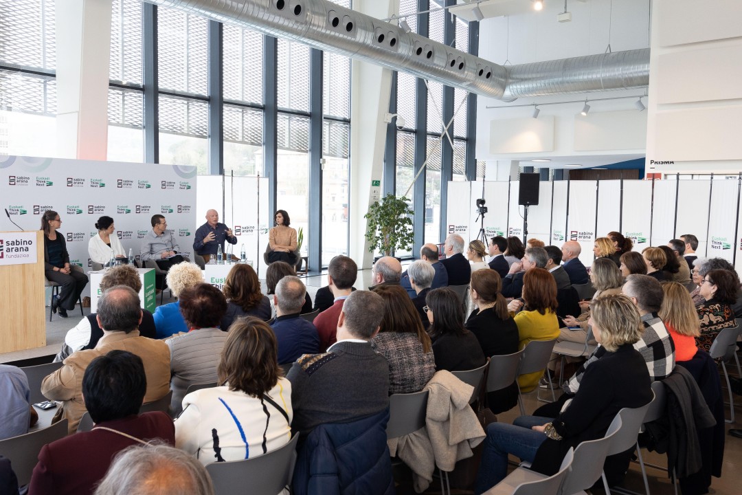 Xabier Barandiaranek, EAJ-PNV alderdiaren Berrikuntza Politikoaren arduradun eta 'Euskadi Think Next' ekimenaren zuzendariak, eta Sabino Arana Fundazioaren presidente eta EAJ-PNV alderdiaren EBBko idazkari Mireia Zaratek aurkeztu dute alderdi jeltzaleak eta Sabino Arana Fundazioak Euskadiren egungo eta etorkizuneko erronkei buruz hausnartzeko gune irekia den ‘Euskadi Think Next’ ekimenaren jardunaldi berri hau.