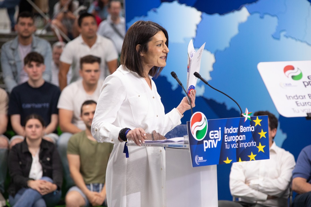“Eskerrak emateko eguna da, azken egun hauetako lanari amaiera ona jartzekoa”, nabarmendu du Oihane Agirregoitia hautagai jeltzaleak. “Gaur goizean aste hauetan egindakoaren errepasoa egin dugu: 8.000 kilometro, 35 elkarrizketa, 8 eztabaida, 28 kanpaina-ekitaldi...”. Zenbaki horiek “esker ona merezi dute, baina proposamenena; Eusko Alderdi Jeltzaleak aste hauetan mahai gainean jarri dituen 160 proposamenak, astelehenetik aurrera Bruselan bultzatuko ditugunak”, aurreratu du. Ondoren hitzeman du lan egingo duela “berdintasunezkoa, eraldatzailea eta gure kanpoko dependentziak ezabatuko dituen Europa baten alde; bakearen bermatzaile izango dena eta munduko leku guztietan pertsona guztien giza eskubideak defendatuko dituena; kalitatezko enplegu-aukera berriak eskainiko dituena, batez ere emakumeentzat eta gazteentzat; Europako ekosistema industrialaren garapena aldarrikatuko duena, euskal industria delako gure lehentasuna; lehen sektoreari arreta eskainiko diona eta arrantzaleen eta nekazarien beharrak aintzat hartuko dituena; aniztasunean batuta eta elkartuta dauden eta euskal herria bezalako herrien aniztasuna errespetatuko duena, eta, jakina, euskara Europako erakundeetan hizkuntza ofizial bihurtzeko lana egingo duena. Hau da gure konpromisoa”, amaitu du.