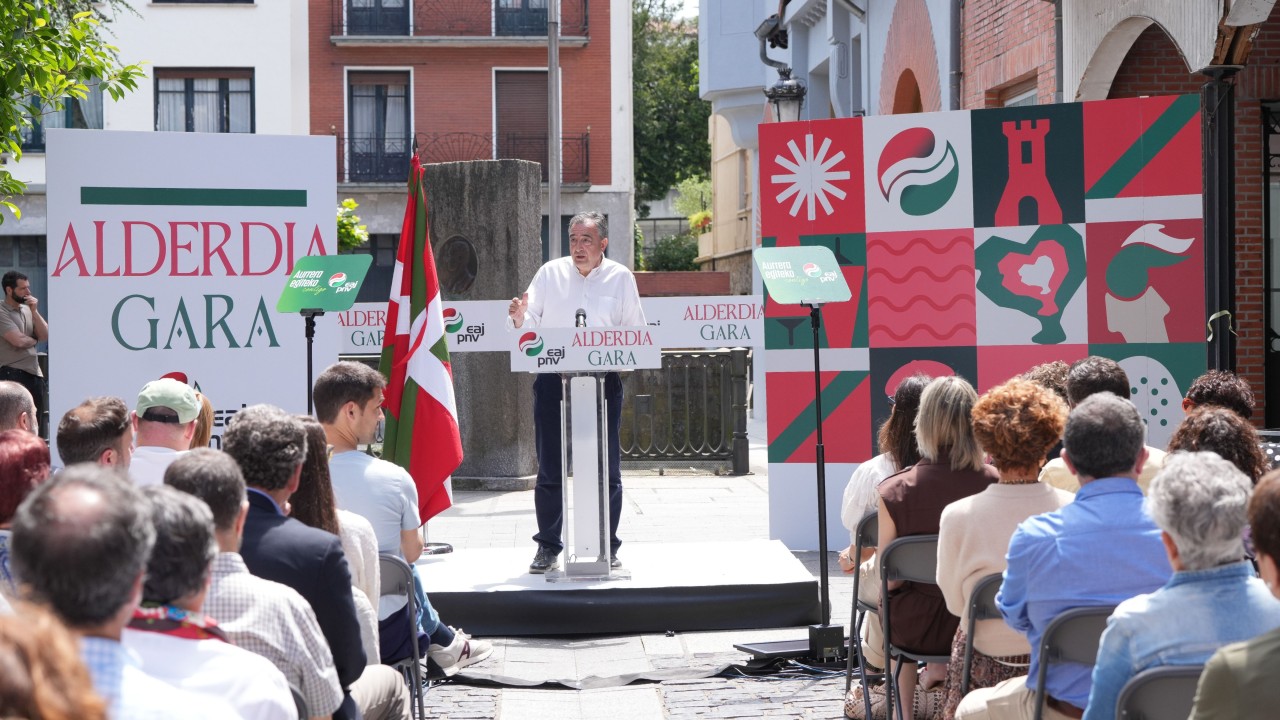 Aitor Estebanek, EAJ-PNVren EBBko presidenteak, gaur aldarrikatu ditu EAJ-PNVren “eredua” eta “indarra”. “Badakigu nor garen, zer garen eta zer Euskadi nahi dugun”, esan du. Eta mezua bidali die, EH Bildu eta PP bezala, “ur nahasitan arrantza egin nahi dutenak”. “Errealitatea burugogorra da: Euskadiko koalizio akordioak ondo funtzionatzen du. Sendoa da eta zehatz-mehatz jasota dago agiri publikoan . Alderdi bi akordio programatikotik harago dauden eta beste administrazio bati dagozkion gaietan ados ez egotea, ulergarria da, bai eta posiblea ere. EAJk hauteskundeak irabazi zituen eta Euskadiko Lehendakaritzan jarraituko du”, esan du.