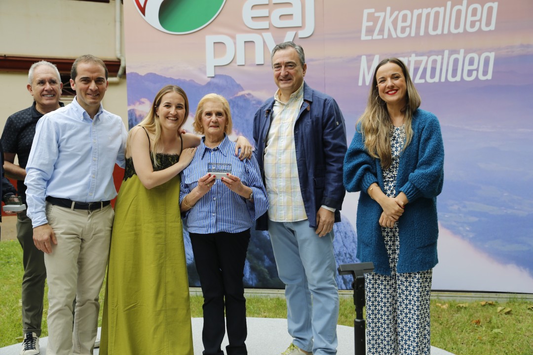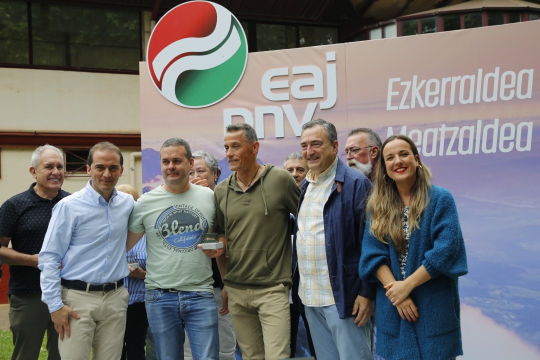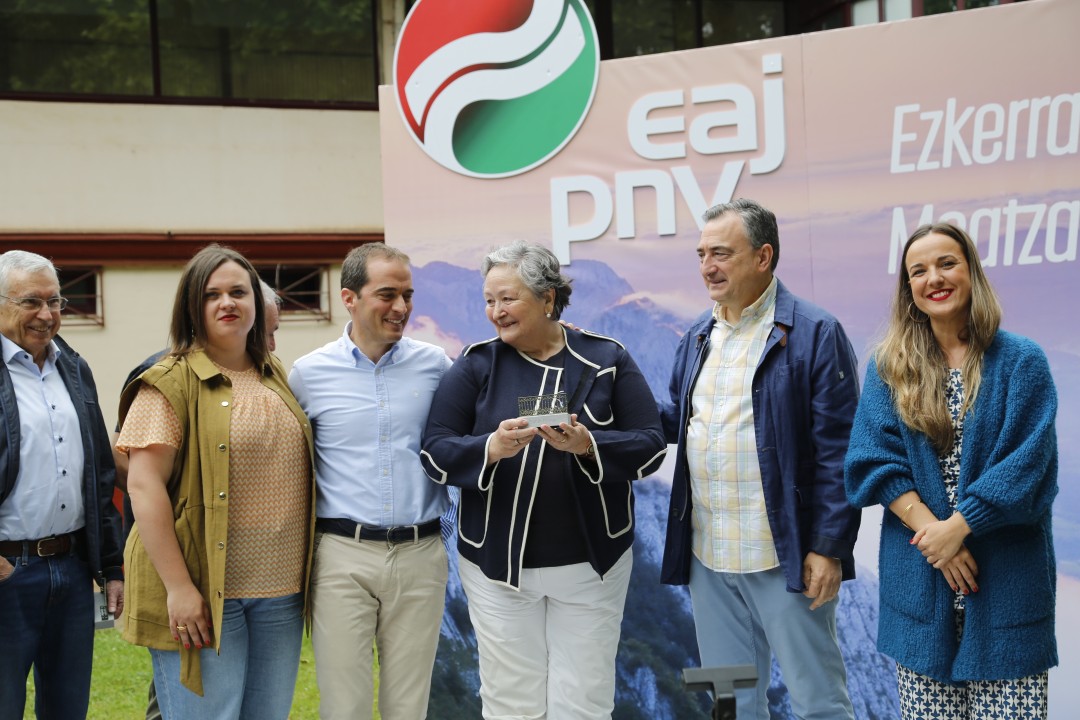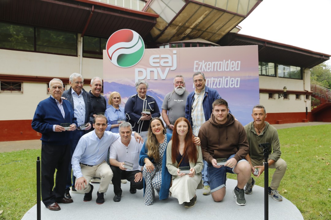 Gaurko eguna izan da, batez ere, eskualdeko alderdikideei gorazarre egiteko eguna. Aintzatespen berezia egin zaie EBBren presidente ohi Andoni Ortuzarri “Alderdiaren iparorratza politikari eta pertsona gisa, bere ikuspegiagatik, izaeragatik eta bateratzeko gaitasunagatik” eta EBBren Antolakuntza burukide ohi Joseba Aurrkoetxeari “antolakuntzaren arima eta alderdikide nekaezina, egon den tokian komunitatea egiten lagundu baitu, Alderdiari egitura eta indarra emanez”. Halaber, Uri Erakundeek alderdikide bana aukeratu dute, askotan anonimotasunetik eta erantzukizun, ibilbide eta bizitzako etapa desberdinetatik, EAJ-PNV alderdi politiko bat baino askoz gehiago izatea ahalbidetu duten guztien sinbolo gisa. “EAJ-PNVk Ezkerraldean eta Meatzaldean sustrai sendoak izan zitzan, Trantsizioko momenturik gogorrenetan, krisi industrialean edo indarkeria gorenean zegoenean, konpromisoari eutsi zion belaunaldi oso baten ordezkari zarete. Eskerrik asko, bihotzez”, esan du Ansolak.