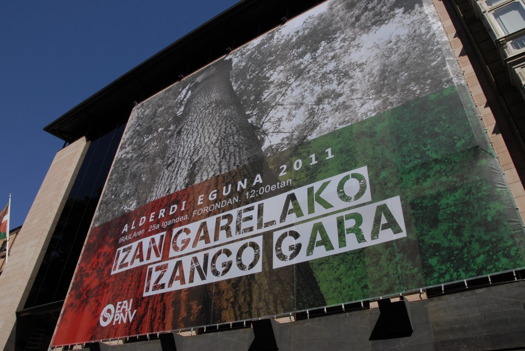 Cartel de Alderdi Eguna en Fachada Sabin Etxea 09Irailak