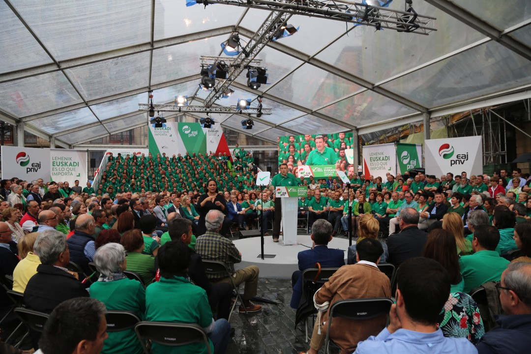 Bilbao. Mitina Arriaga plaza. Andoni Ortuzar, Iñigo Urkullu, Aitor Esteban, Joseba Agirretxea, Mikel Legarda