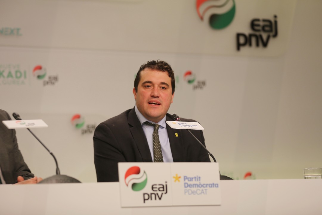 EBBren presidente den Andoni Ortuzar-ek eta PDeCATren presidente den David Bonvehí-k kolaborazio akordioa sinatu dute. 09Apirilak