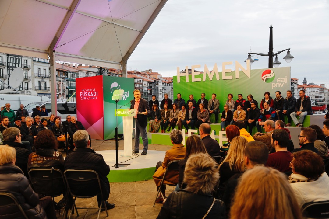 Lekeitioko mitina. Itxaso Atutxa, Aitor Esteban, Idoia Sagastizabal eta Koldo Goitia