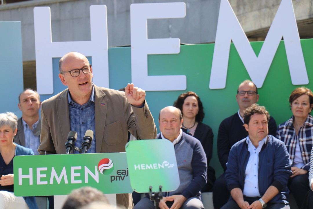 Mitina Zarautz. Andoni Ortuzar, Joseba Agirretxea, Maribel Vaquero, Xabier Txurruka