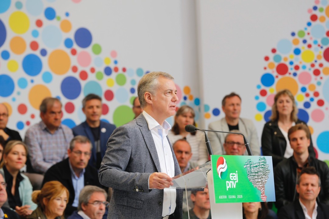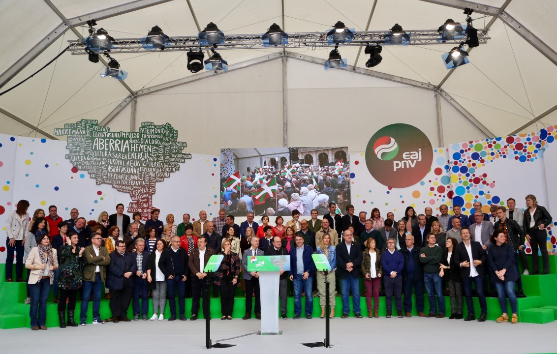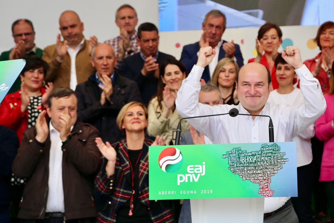 Mitina Aberri Eguna 2019. Aitor Esteban, Iñigo Urkullu, Andoni Ortuzar. Bilbao