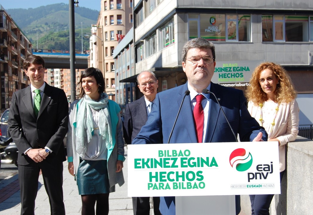 18MayoAsí ha comenzado esta mañana el candidato de EAJ-PNV a la Alcaldía de Bilbao delante del futuro auzo factory de Rekalde. “Hemos elaborado para Bilbao un ambicioso mapa de actuaciones de generación de empleo y actividad económica.”
