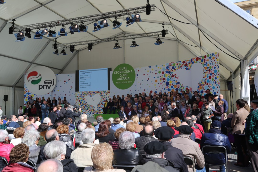 El dirigente nacionalista ha expresado su confianza en que este sea el último Aberri Eguna con ETA aún activa. “A lo largo de toda nuestra historia hemos estado radicalmente opuestos a la violencia de ETA. La violencia de ETA, además de muerte, dolor y desolación, provocó una crisis moral en nuestra sociedad. Y ha ensuciado el nombre de Euskadi. Ahora que están a punto de bajar definitivamente la persiana sería bueno que asumieran con claridad su trágico legado y la injusticia de sus actos”, ha afirmado. Y, como cierre de su intervención, ha asegurado que “proclamarse hoy abertzale y jeltzale significa compromiso con este País y con este Pueblo. Con una Nación que queremos sea abierta, próspera, libre de violencias, especialmente de la machista, en el que nuestros y nuestras mayores puedan vivir dignamente con sus pensiones y los y las jóvenes puedan emanciparse gracias a empleos de calidad, donde surjan familias que quieran tener hijas e hijos para garantizar nuevas generaciones de vascos y vascas. En eso estamos en todas nuestras Instituciones”.