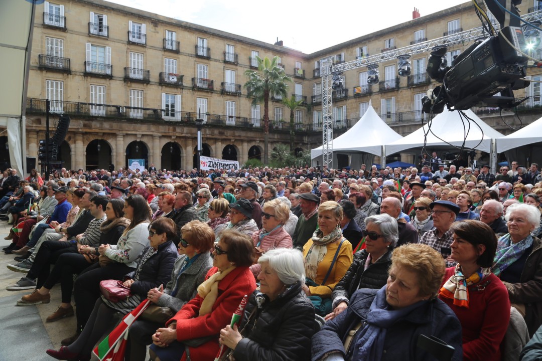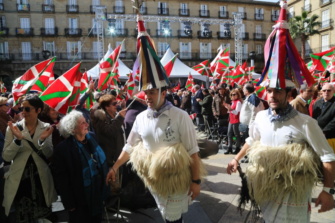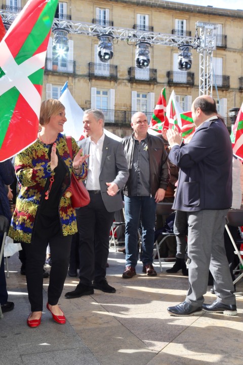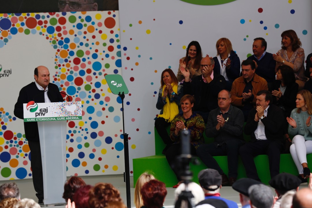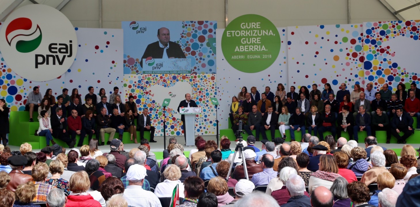 El presidente del Euzkadi Buru Batzar reivindica la buena marcha del país pero previene contra la emergencia de un “nacionalismo español rancio” en el acto con que EAJ-PNV ha festejado el Aberri Eguna en la Plaza Nueva de Bilbao